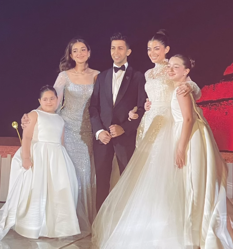 عروسة بحر.. إطلالة ملك زاهر في حفل زفاف شقيقتها ليلى