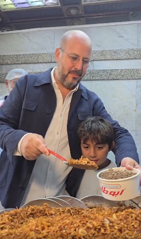قبل دقائق نشرت الصفحة الرسمية لكشري أبو طارق على فيسبوك فيديو قصيرا، وثق زيارة الأمير محمد علي للمطعم رفقة نجليه.