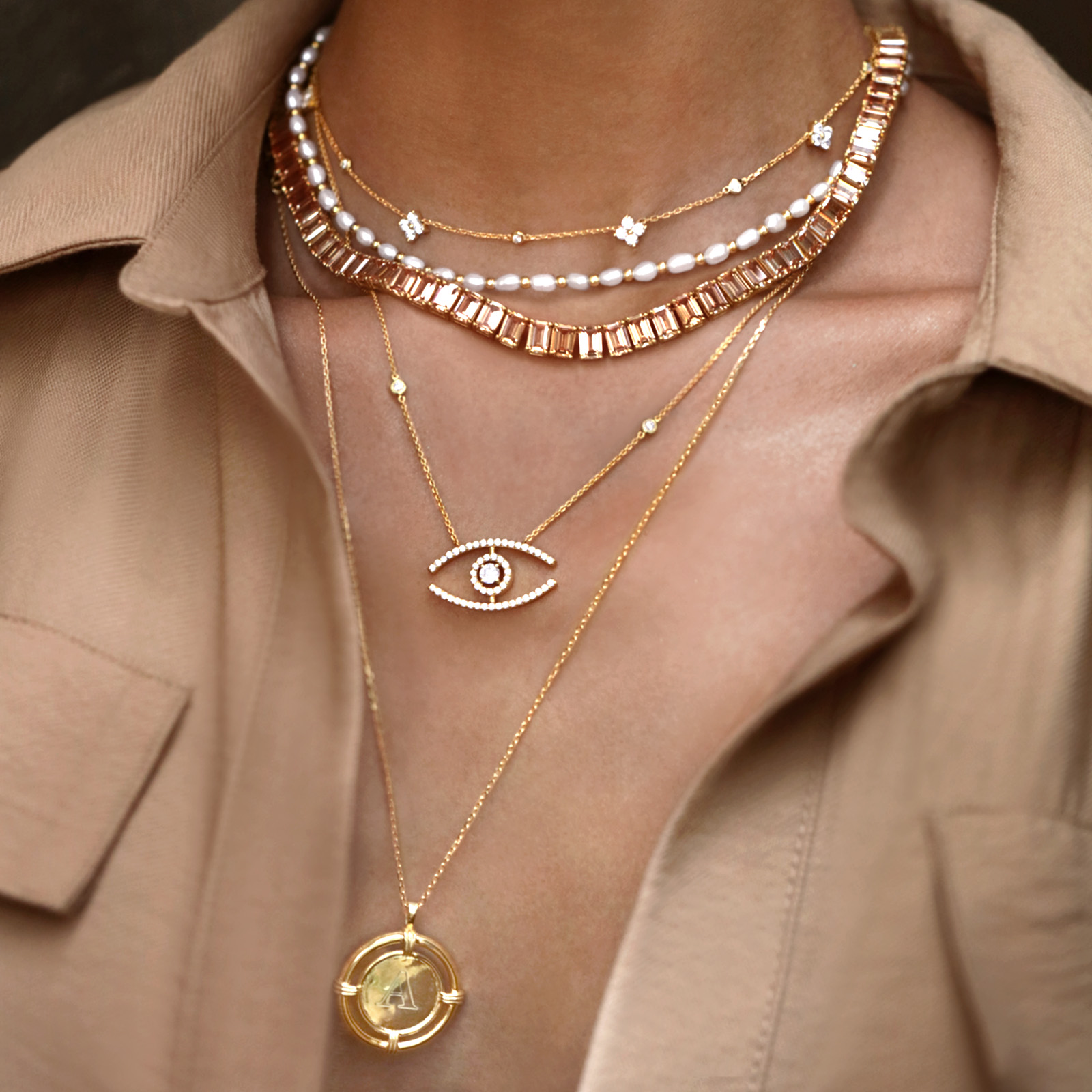 البساطة لا تعني البساطة والملل؛ جرّب الأشكال والقوام عند اختيار الأقراط الدائرية، والقلادات المُدلاة المرحة.