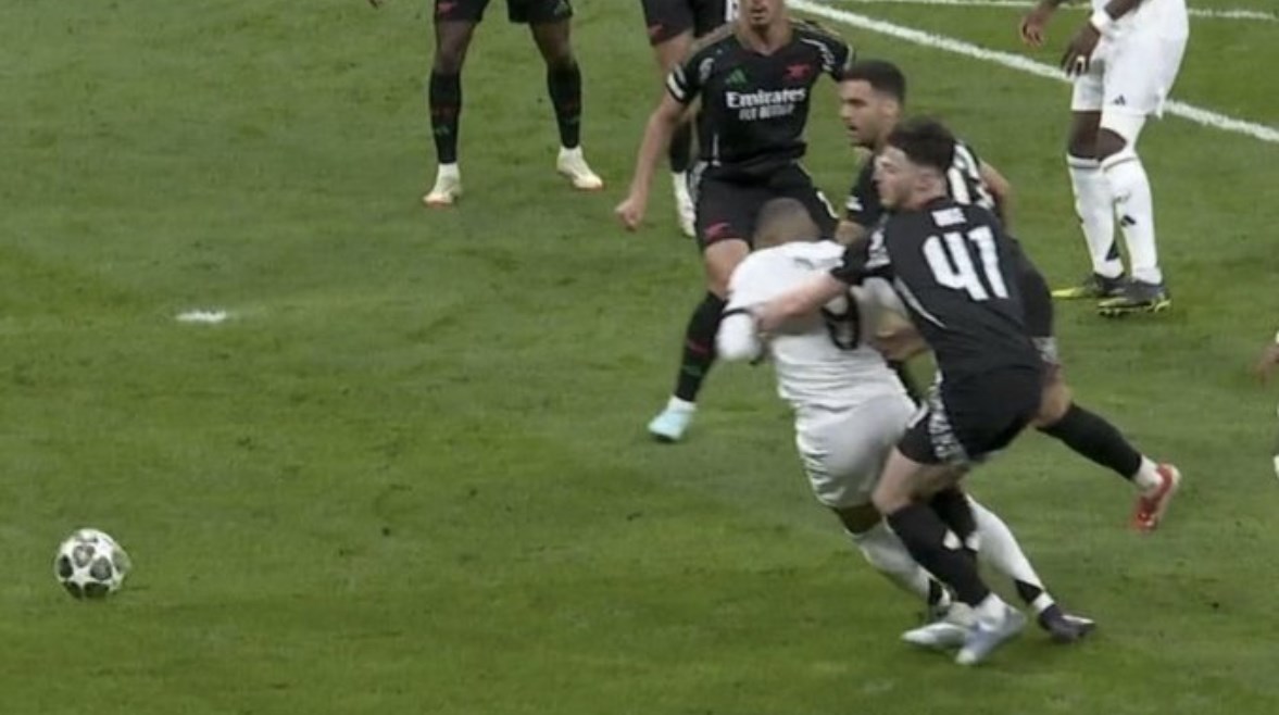 واشتعلت المباراة عندما احتسب حكم المباراة ركلة جزاء لـ ريال مدريد ضد أرسنال، بعد خطأ ديكلان رايس وعرقلة كيليان مبابي مهاجم الريال في الدقيقة 23.