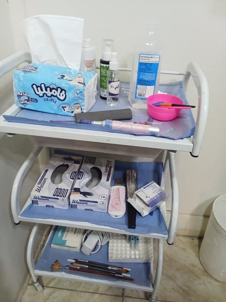 كما تم العثور على مستلزمات طبية للعناية بالبشرة والشعر معدة للاستخدام دون بيانات تعريفية واضحة، مما يثير الشكوك حول مدى صلاحيتها للاستخدام الآمن، فضلًا عن وجود نفايات طبية خطرة دون وجود ترخيص للتداول السليم لها.
