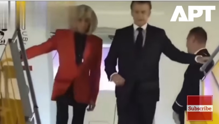يظهر الفيديو ماكرون وزوجته بريجيت التي تكبره بـ24 عامًا، وهو يتلقى صفعة قوية على وجهه أمام الملأ أثناء خروجهما من الطائرة عند وصولهما إلى فيتنام في جولة رئاسية.