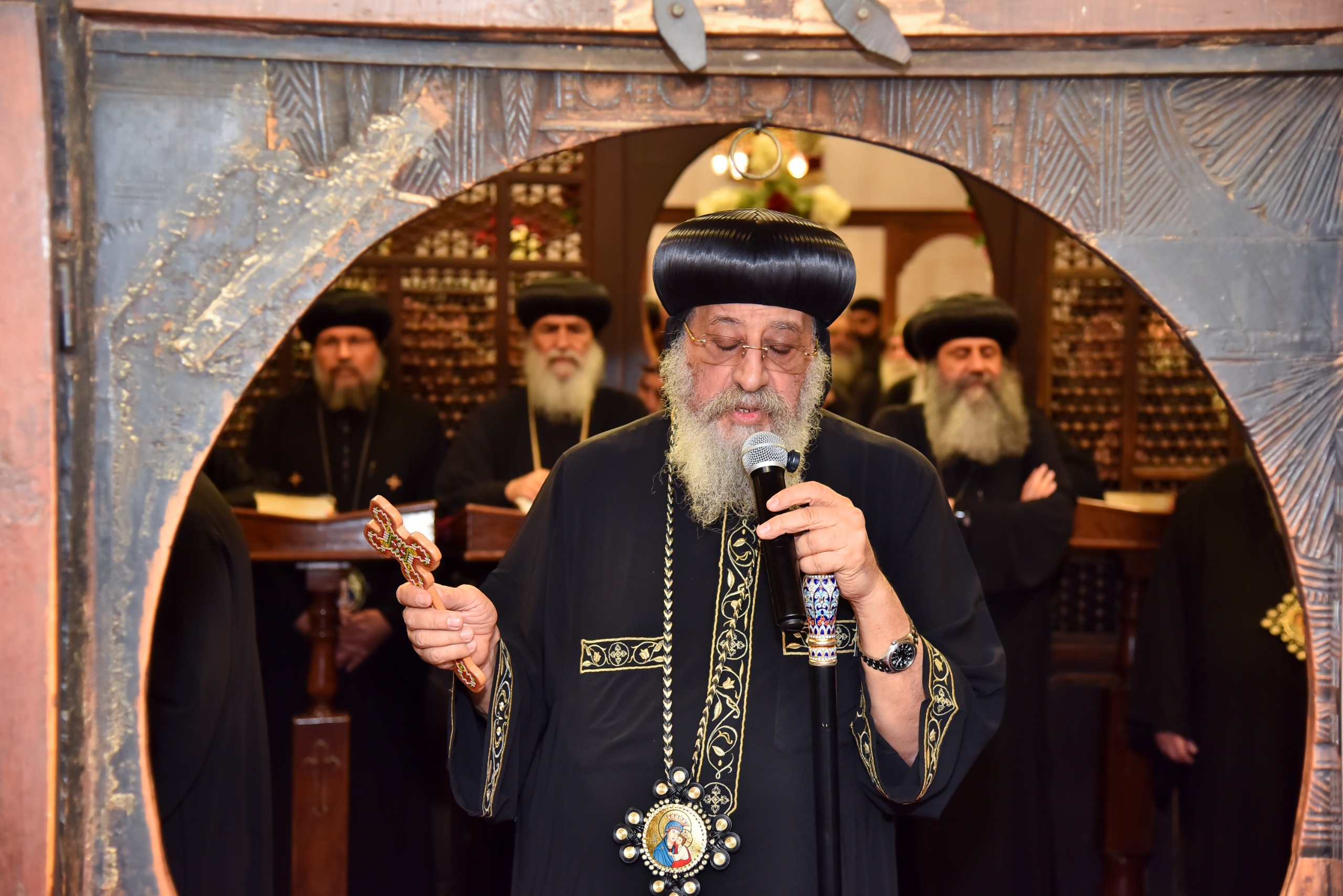دشّن قداسة البابا تواضروس الثاني، بابا الإسكندرية وبطريرك الكرازة المرقسية، اليوم كاتدرائية القديس مار مرقس الرسول بقرية رزقة الدير التابعة لإيبارشية الدير المحرق، بمشاركة 20 من الآباء المطارنة والأساقفة.