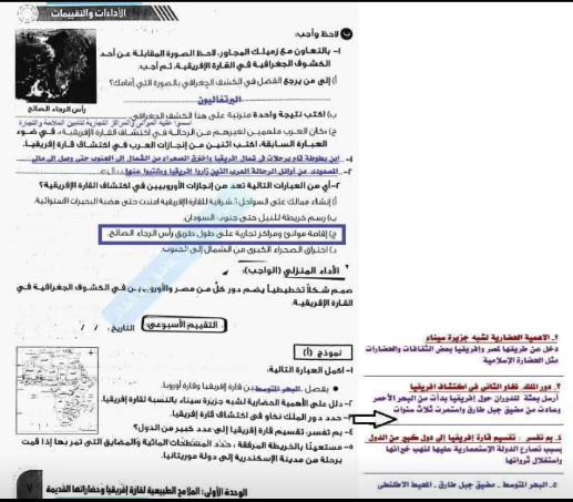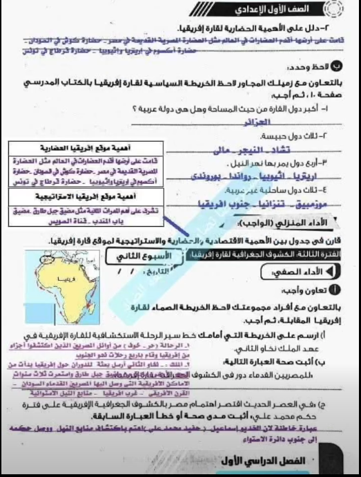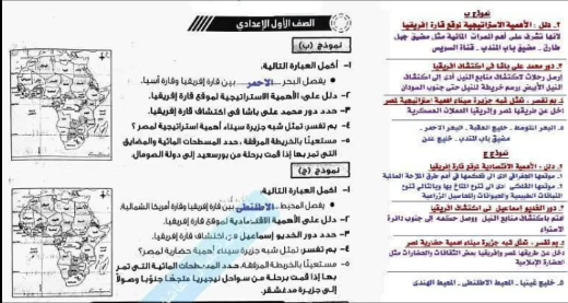 التقييم الأسبوعي للصف الأول الإعدادي دراسات.. اعرف الحل