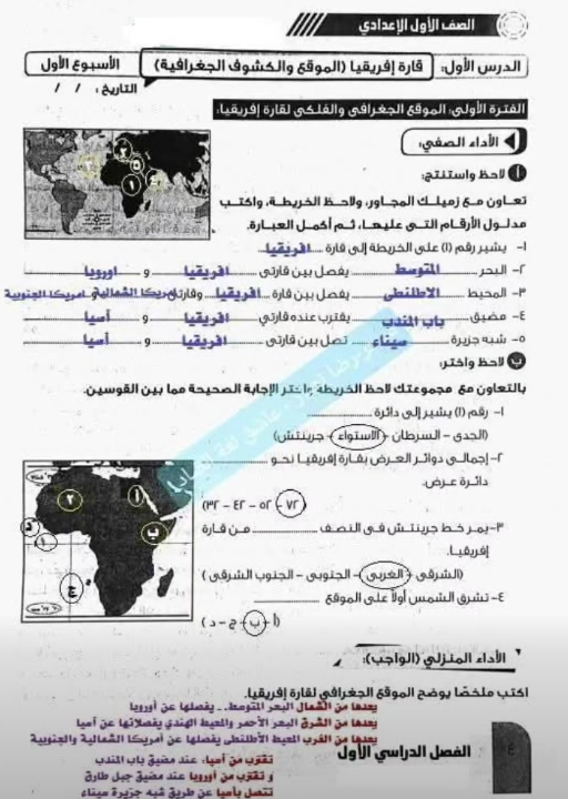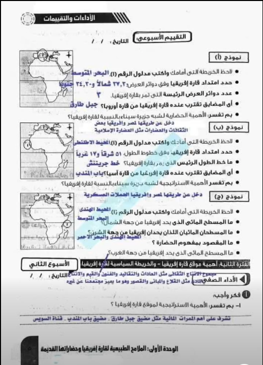 التقييم الأسبوعي للصف الأول الإعدادي دراسات
