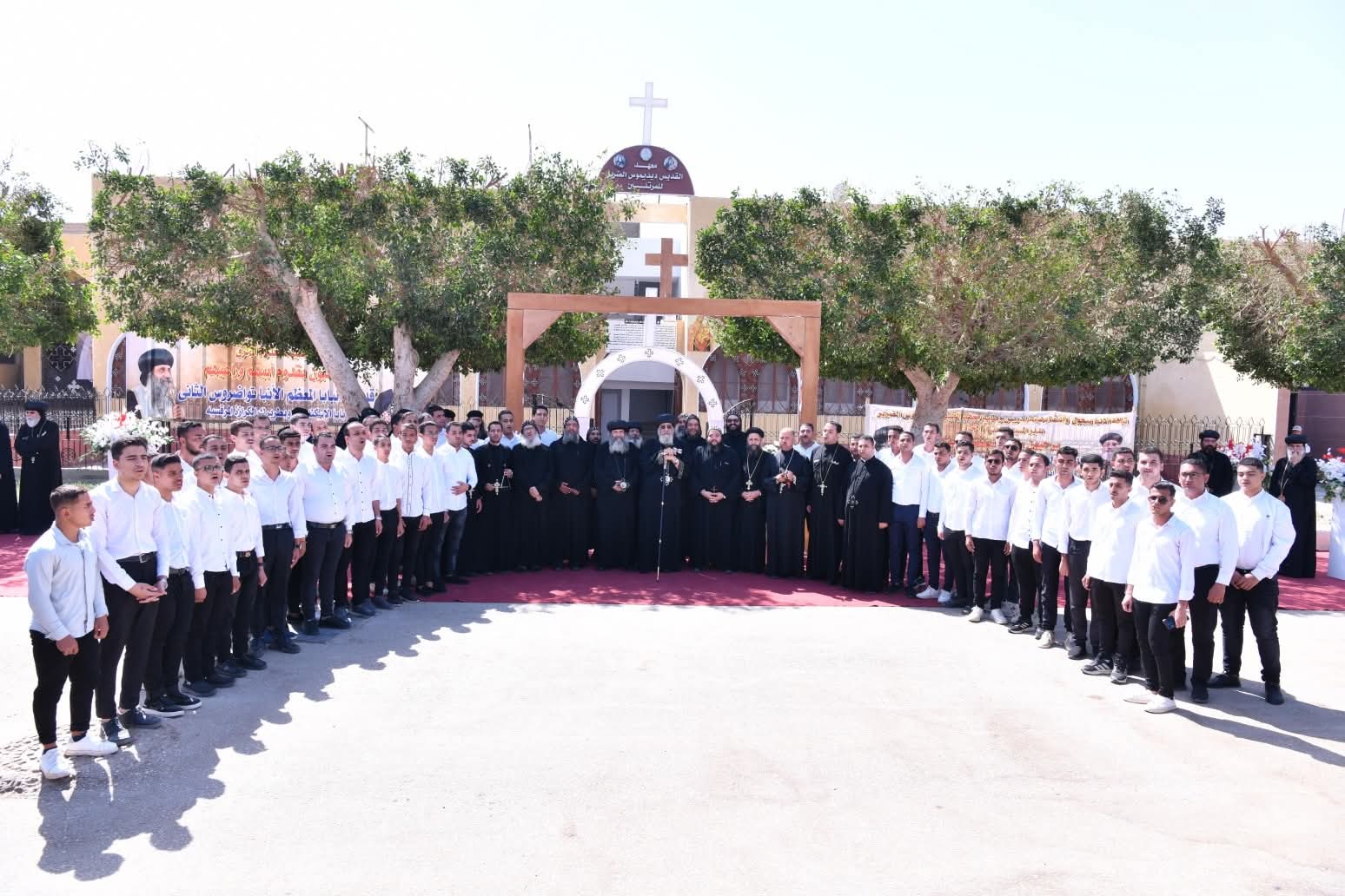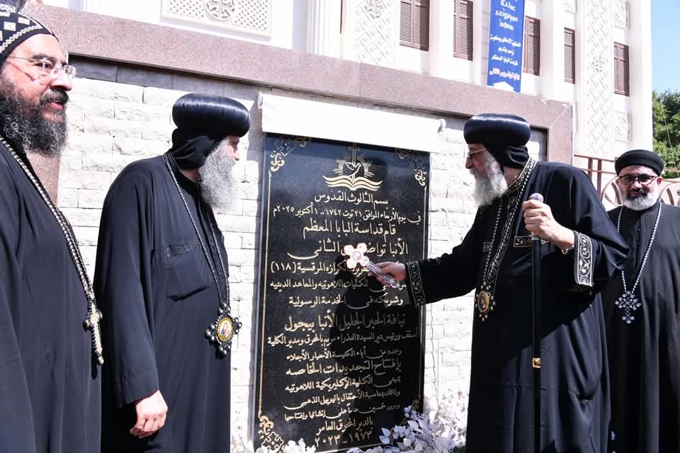 وألقى الراهب القمص أرساني المحرقي المشرف على طلبة الإكليريكية كلمة ترحيب بقداسة البابا، حدثهم بعدها قداسته عن ثلاثية هامة تؤدي من خلالها الكنيسة عملها، وهي: التعليم والتكريس والرعاية. والتي تعد بمثابة مثلث الخدمة الكنسية.