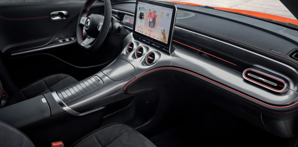 وجهزت المقصورة الداخلية بشاشة عرض مركزية بحجم 12.8 إنش، ومقاعد رياضية توفر دعمًا وراحة أثناء القيادة الطويلة.