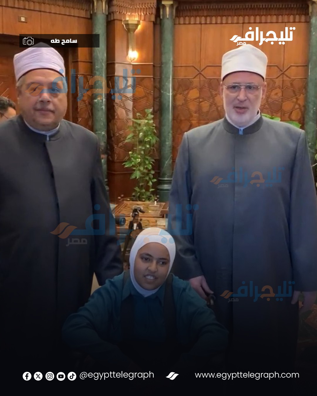 الإمام أحمد الطيب يكرم الطالبة آية السيد محاربة السرطان