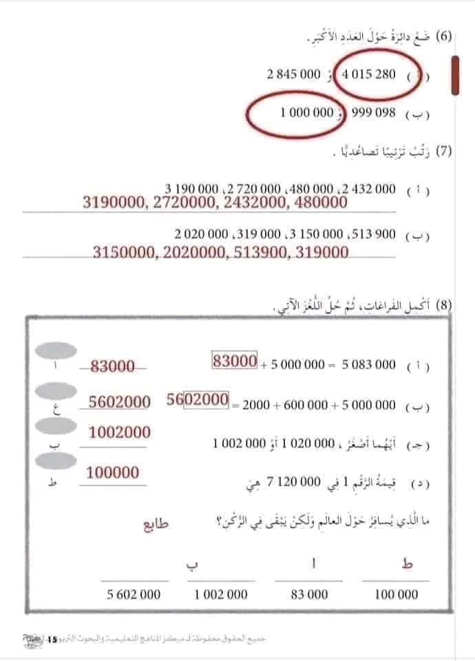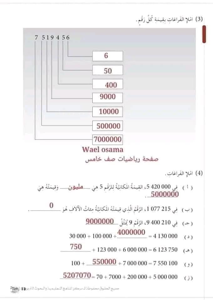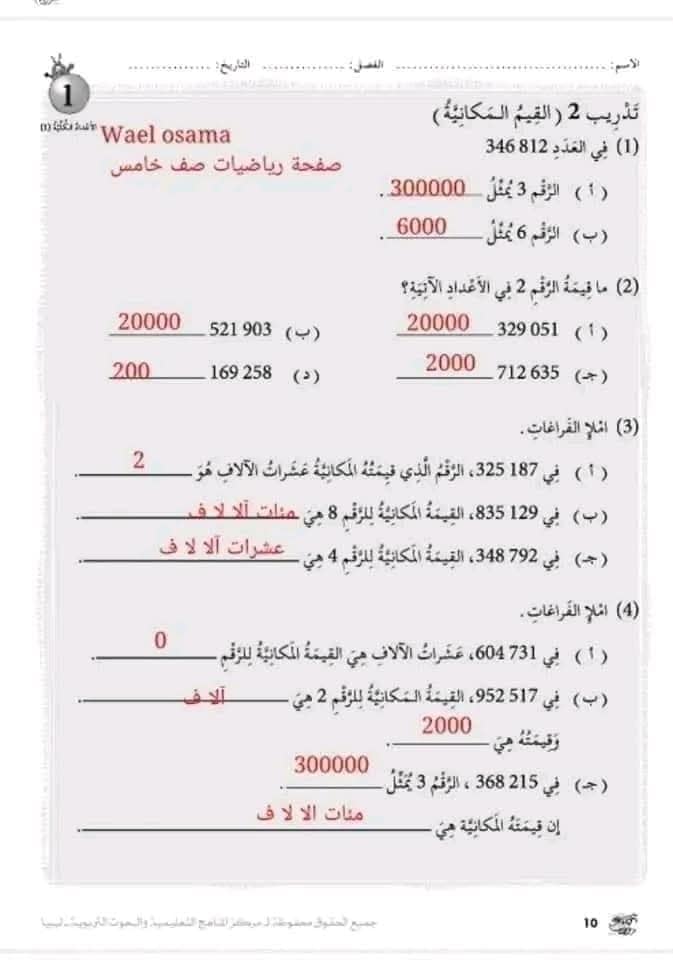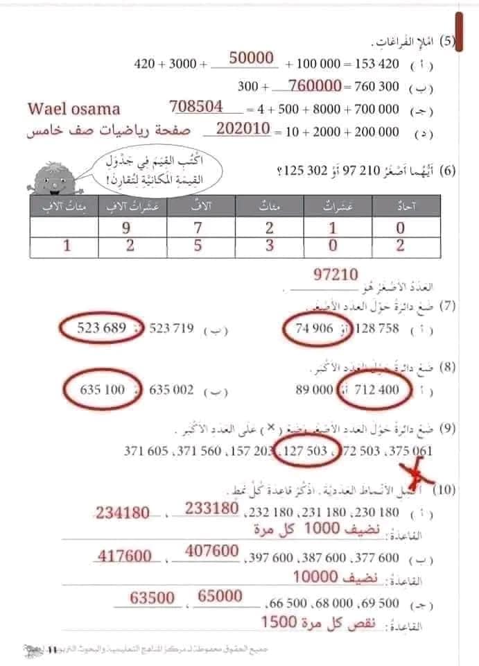 حل أسئلة الكتاب المدرسي رياضيات الصف الخامس الابتدائي بالكامل