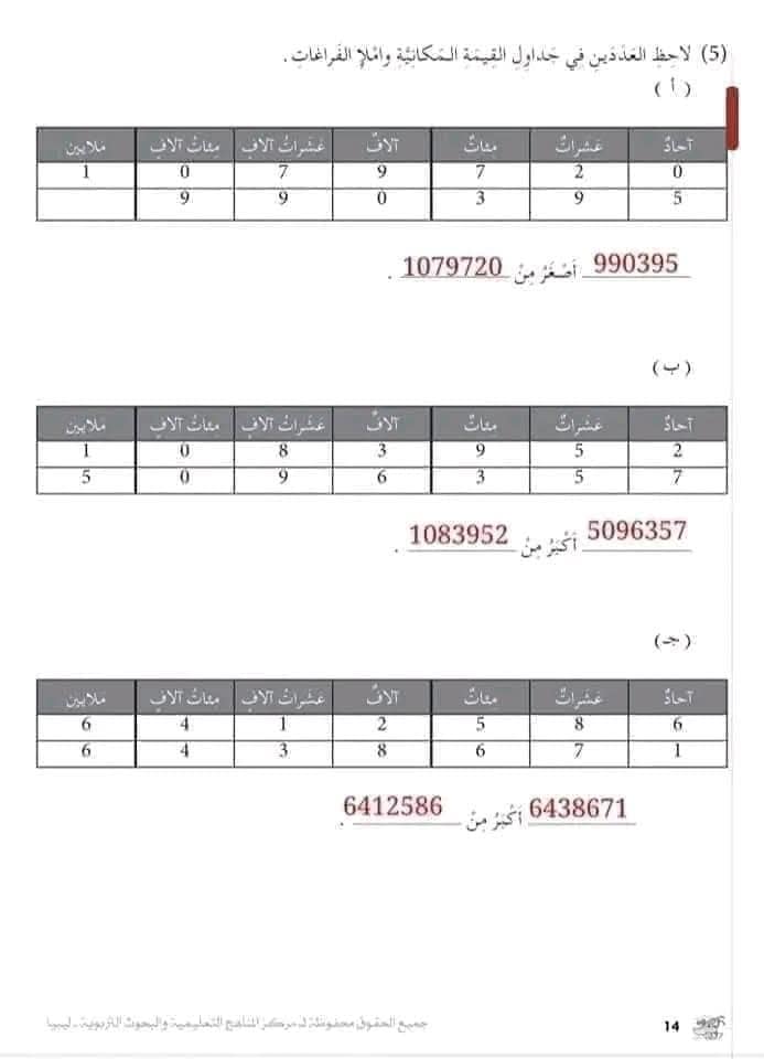 وجاء حل كتاب الرياضيات للصف الخامس الابتدائي كامل كالتالي: