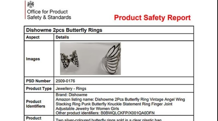 وأوضح مكتب سلامة المعايير والمنتجات أن الاختبارات أجريت على خواتم الفراشة الفضية، وهي خواتم مصنوعة في الصين للفتيات والنساء، إذ أظهرت النتائج وجود نسب مرتفعة من الكادميوم تتجاوز الحد المسموح به، وفقًا لصحيفة “ديلي ميل” البريطانية.
