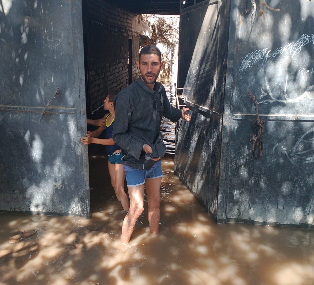 وأكد أحد الأجداد: “معايا 8 أطفال أحفادي صغار، البيوت كلها غرقت”.