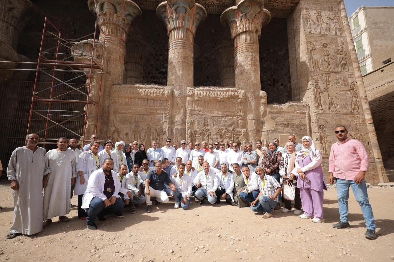 استهل الوزير جولته بتفقد معبد إسنا (معبد خنوم)، حيث صعد إلى السقالات بين فريق المرممين لمتابعة أعمال التنظيف والترميم التي كشفت عن ألوان ونقوش أصلية لم تكن مرئية منذ قرون.