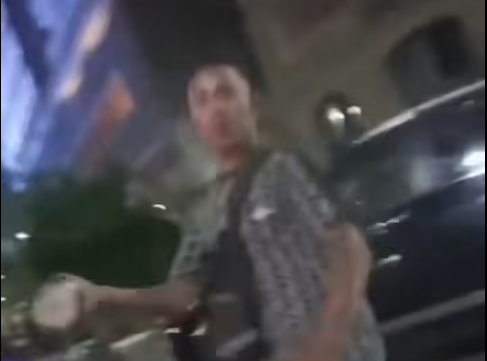وظهر بالفيديو شاب يركب سيارة ويصور المتهم وهو يطارده حتى يقوم بدفع المال له، مقابل عدم التعدي عليه وعلى سيارته ممسكا بيده قالب طوب قائلا: "لو مدفعتش مش همشيك".