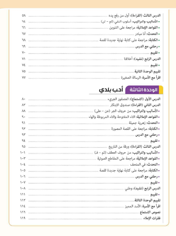 منهج اللغة العربية الصف الثالث الابتدائي 2026