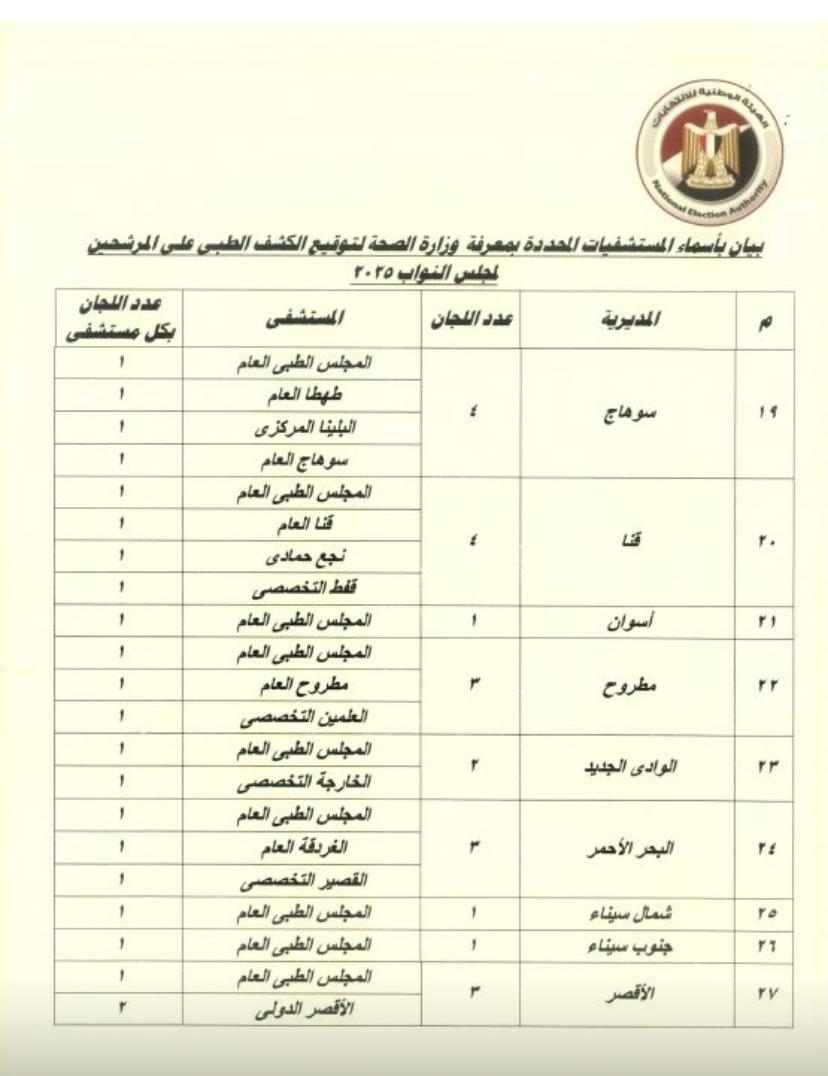 بدء الكشف الطبي لراغبي الترشح لانتخابات مجلس النواب 2025..بـ 129 لجنة