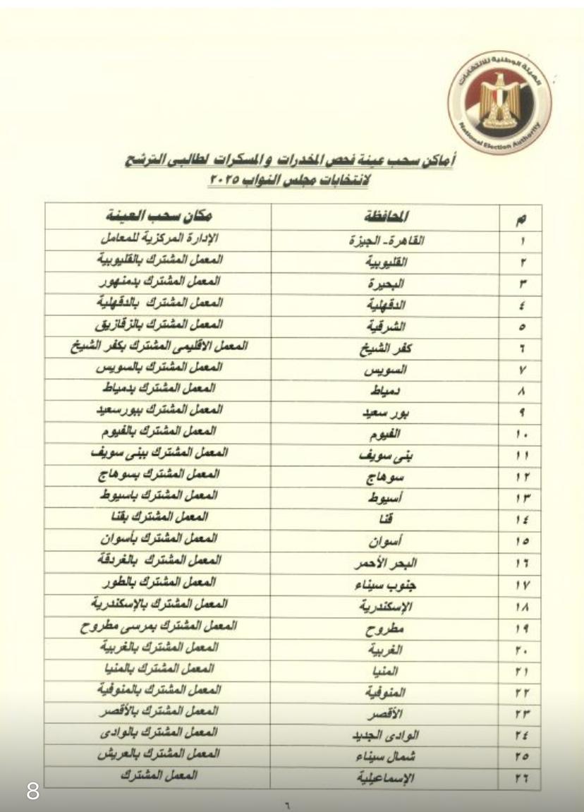 وقال القاضي أحمد بنداري، مدير الجهاز التنفيذي للهيئة الوطنية للانتخابات، إنه تم التنسيق مع وزارة الصحة والسكان لتجهيز عدد كافٍ من اللجان الطبية ومعامل التحاليل على مستوى الجمهورية لتوقيع الكشف الطبي وإجراء التحاليل اللازمة لراغبي الترشح، والتي بلغ عددها 129 لجنة طبية و26 معملا بزيادة عما سبق تجهيزه في انتخابات مجلس الشيوخ.