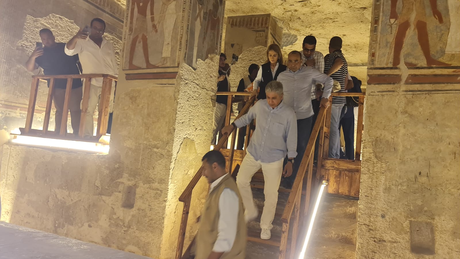 نائب محافظ الأقصر والسيد وزير السياحة والآثار داخل المقبرة عقب افتتاحها