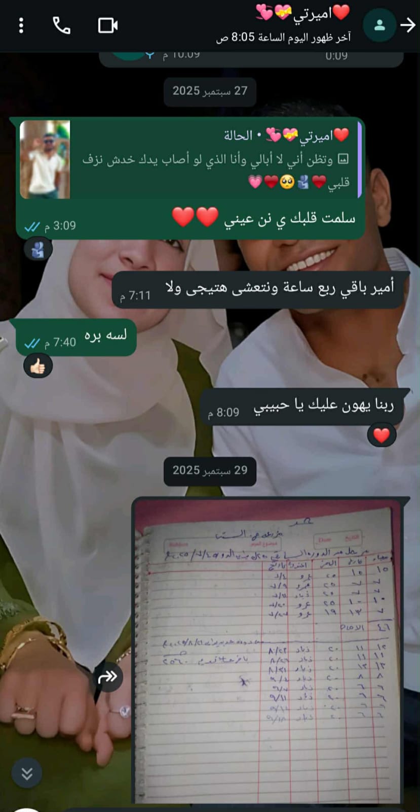 وفيما يخص آخر رسالة من أسماء، فكانت قبل وفاتها بيوم، حيث أرسلت له صورة من دفتر العمل الخاص به حتى يراجع حساب العميل، وهذا دليل على أنه كان يطلعها على أسرار علمهِ.