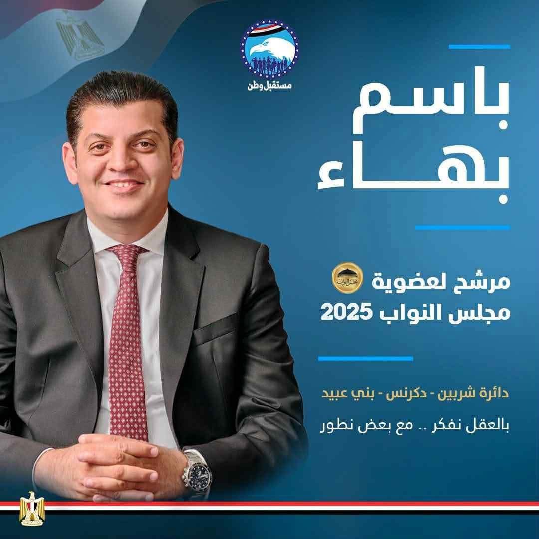 يخوض أمين شباب حزب مستقبل وطن بمحافظة الدقهلية، باسم بهاء، انتخابات مجلس النواب المقبلة ممثلًا عن الحزب في دائرة شربين- دكرنس بني عبيد، ضمن خطة الحزب للدفع بوجوه شابة وكفاءات مهنية قادرة على تحقيق طموحات المواطنين والمشاركة الفاعلة في التنمية المحلية والوطنية.