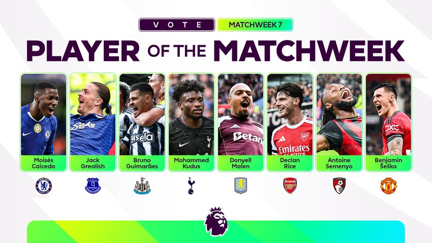 أعلنت رابطة الدوري الإنجليزي الممتاز “البريميرليج”، اليوم الإثنين، عن قائمة المرشحين لجائزة أفضل لاعب في الجولة السابعة من البطولة، عقب انتهاء جولة مثيرة شهدت نتائج مؤثرة في سباق الصدارة.