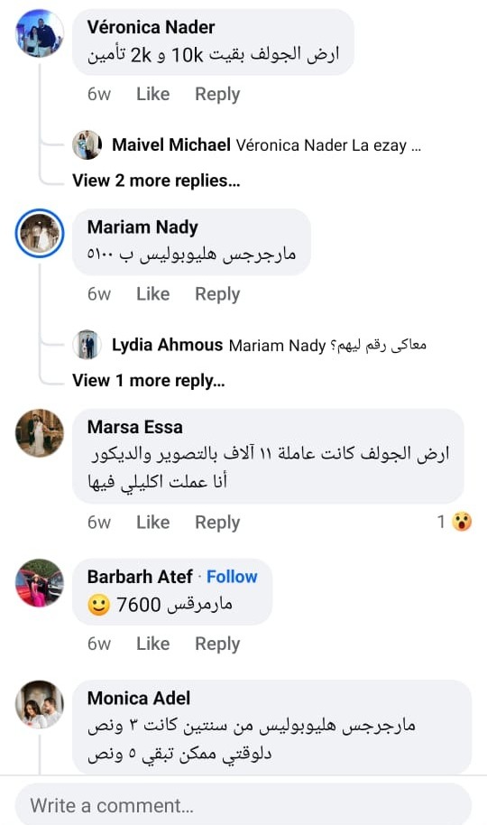 بدأت القصة من منشور بسيط على أحد أشهر مجموعات الفتيات المقبلات على الزواج عبر موقع “فيسبوك”، كتبته فتاة تُدعى إنجي نازح تقول فيه: “يا جماعة محتاجة أسعار كنايس مصر الجديدة.. العدرا أرض الجولف، مارمرقس كليوباترا، مارجرجس هليوبوليس، العدرا النزهة، والملاك شيراتون.. ولو في كنائس تانية قولولي”.