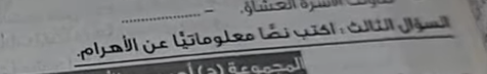 يعد سؤال تطبيق كتابي"نص معلوماتي عن” الأهرام" للصف السادس الابتدائي الترم الأول من بين التقييمات المقررة على طلاب وطالبات الصف، وذلك لمساعدتهم على التعرف على معالم مصر الأثرية.