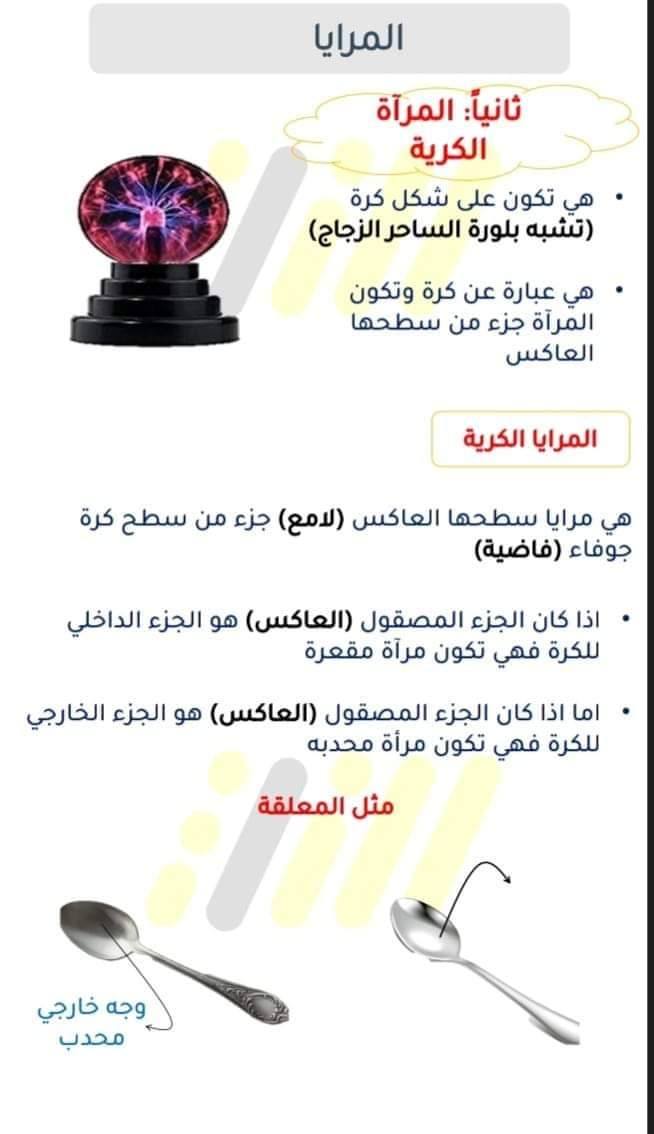 شرح درس المرايا للصف الثالث الإعدادي 2025-2026