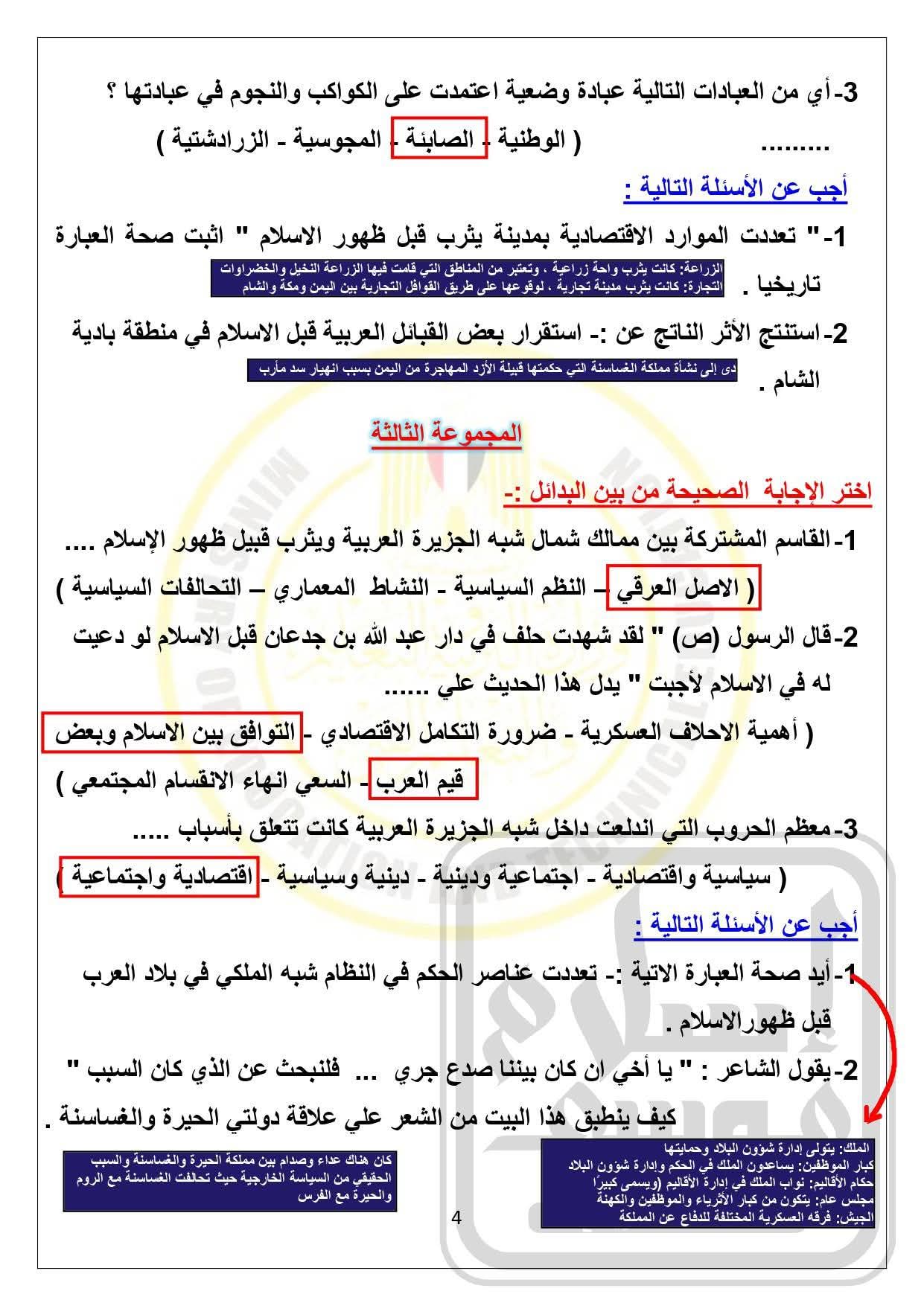 وجاء حل تقييم الأسبوع الثاني تاريخ تانية ثانوي كالتالي: