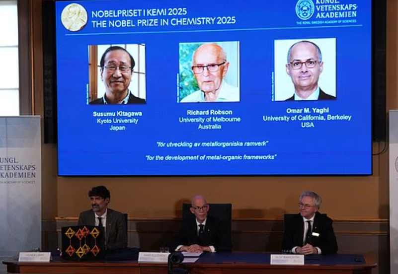 وأفادت لجنة نوبل بأن الحائزين على الجائزة طوّروا شكلاً جديدًا من الهندسة الجزيئية، قادرًا على استخلاص الماء من هواء الصحراء، واحتجاز ثاني أكسيد الكربون.