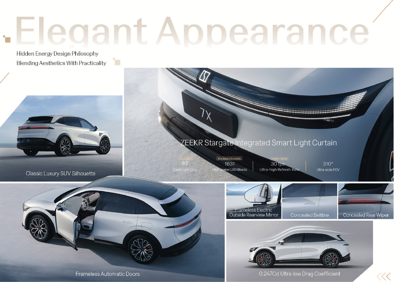 صممت السيارة بمصابيح أمامية وخلفية LED، إضاءة نهارية LED، مصابيح الانعطاف الخلفية بإضاءة متحركة، مسّاحات أمامية بحساس للمطر، ضبط وطي مرايا الأبواب كهربائيًا.