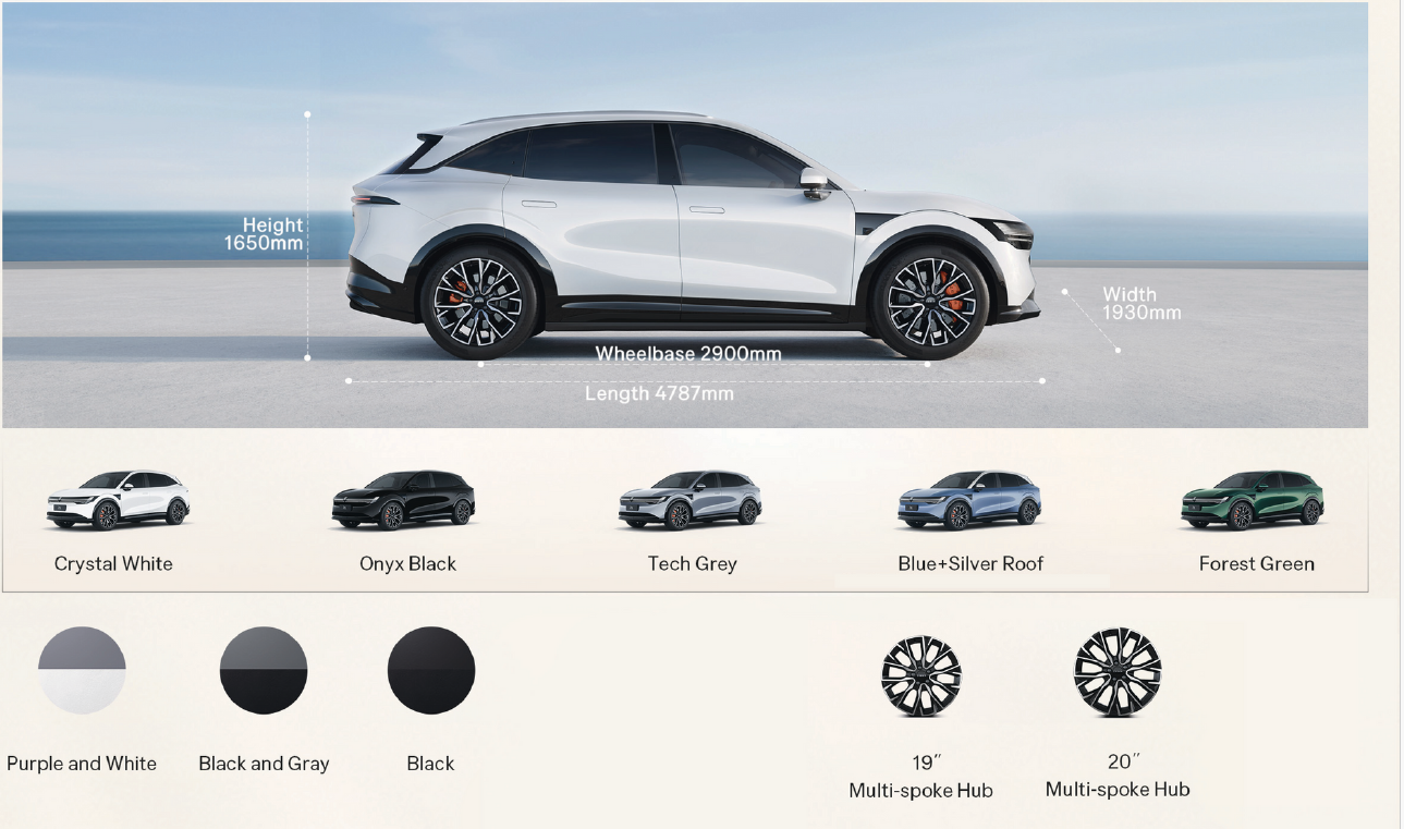 تتوفر السيارة في خمس ألوان: الأبيض والأسود والرمادي والأخضر والأزرق.