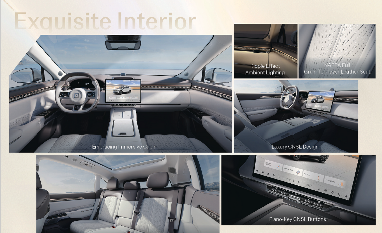 جهزت المقصورة الداخلية بتكنولوجيا متقدمة تشمل فتح السيارة إمكانية فتح السيارة بكارت NFC، وعجلة قيادة متعددة الوظائف، شاشة عدادات HD مقاس 13.02 بوصة، شاشة مركزية مقاس 16 بوصة، توصيل الهواتف الذكية بالسيارة عبر تطبيقات آبل كار بلاي، وأندورويد أوتو.