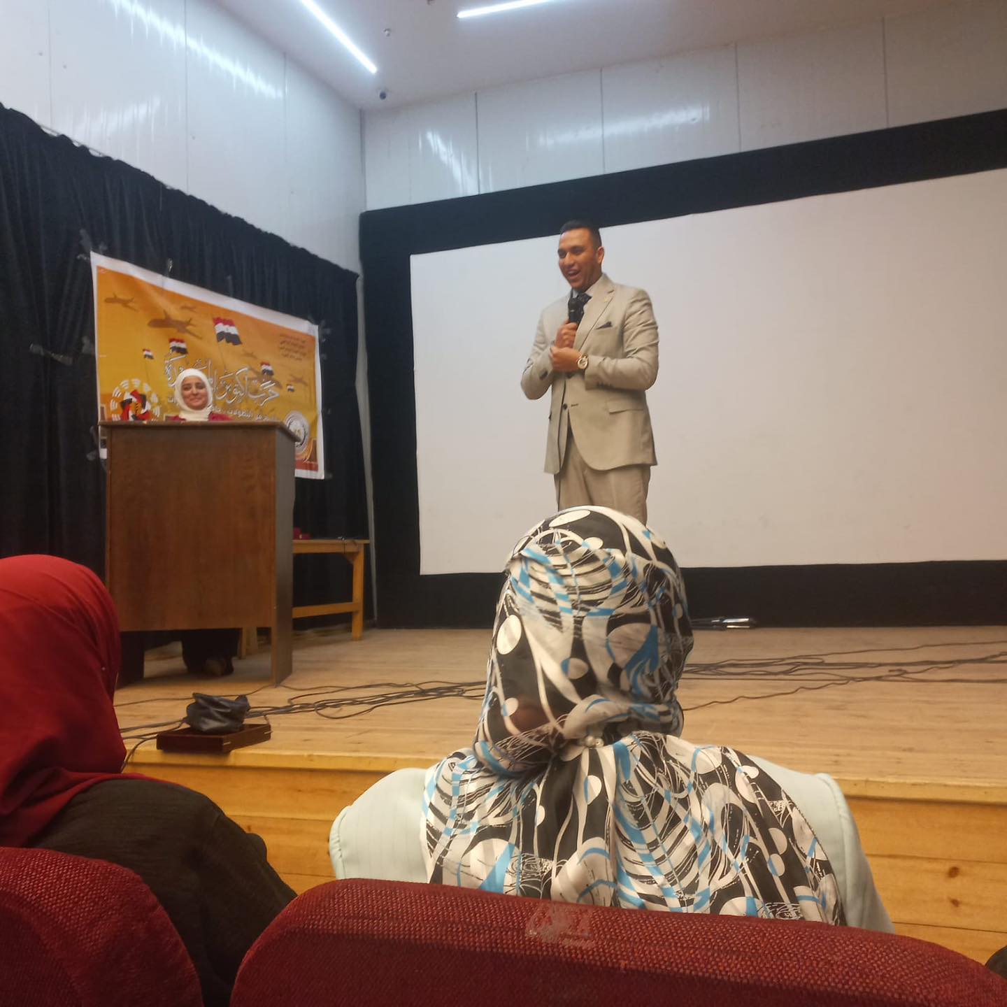 استهلت الإعلامية ابتسام حمدي، الندوة بإبراز دور الهيئة التوعوي في المناسبات القومية، كما توالت الكلمات التي أكدت على القيم المستلهمة من نصر أكتوبر.