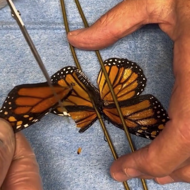 كان لدى جانين بنديكسن، مديرة إعادة تأهيل الحياة البرية في المركز، فكرة جريئة وهي زرع جناح من جديد للفراشة.