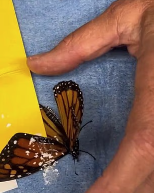كان الجناح ملتويًا وممزقًا، ما أعاق قدرة الفراشة الملكية على الطيران، ورصدت داجمار هوفدافيس، من مدينة دير بارك بالولايات المتحدة، هذه الحشرة المحتضرة وأرادت محاولة إنقاذ حياتها.