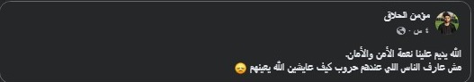 في المقابل، غلب على آخرين شعور الدعابة والامتنان بعودة الاستقرار، حيث قال مؤمن الحلاق بأسلوب ساخر: "الله يديم علينا نعمة الأمن والأمان، مش عارف الناس اللي عندهم حروب كيف عايشين، الله يعينهم".