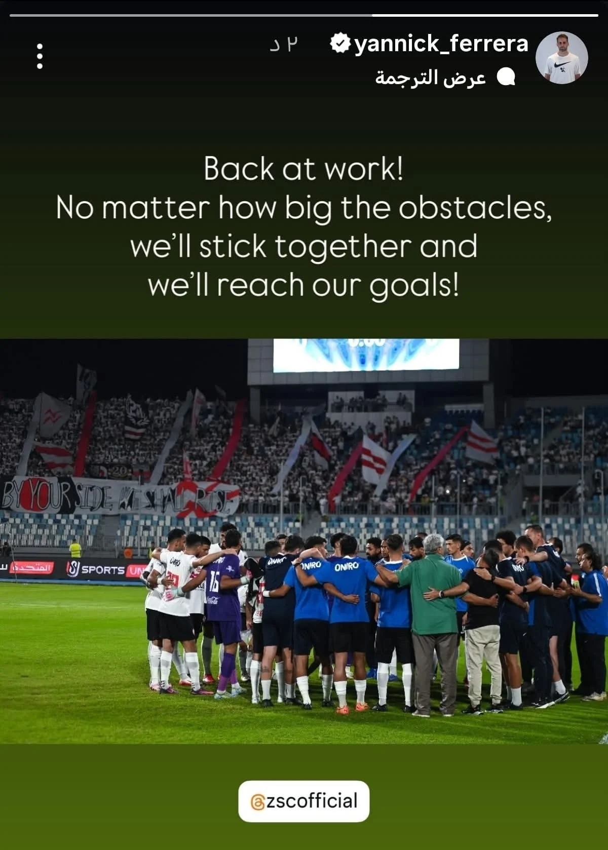 وكتب فيريرا عبر حسابه على "إنستجرام": "العودة إلى العمل، مهما كانت العقبات كبيرة، سنبقى معًا وسنصل إلى أهدافنا".
