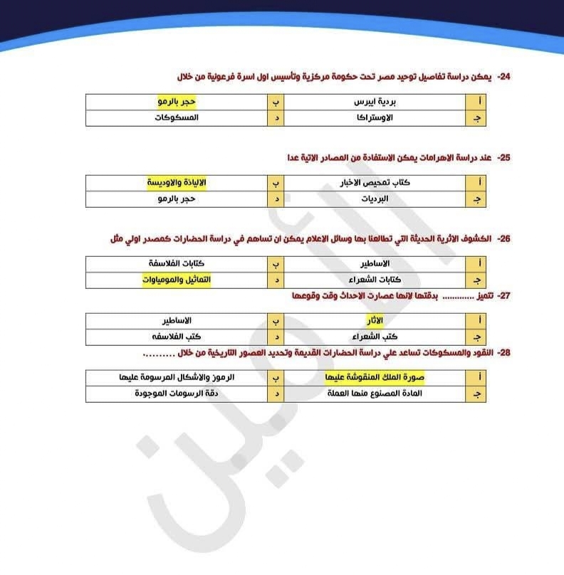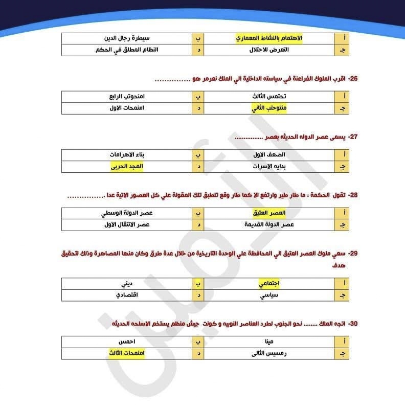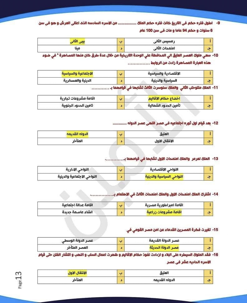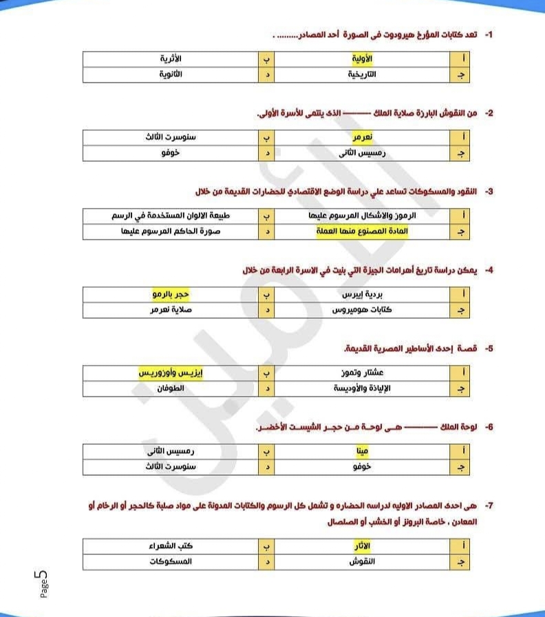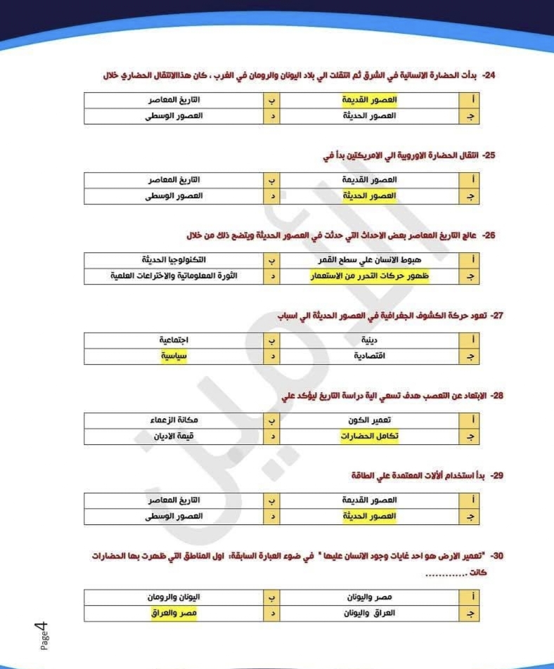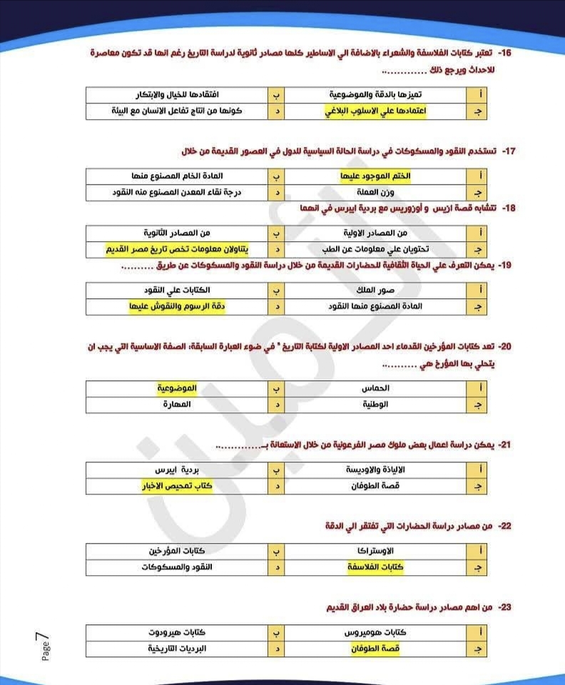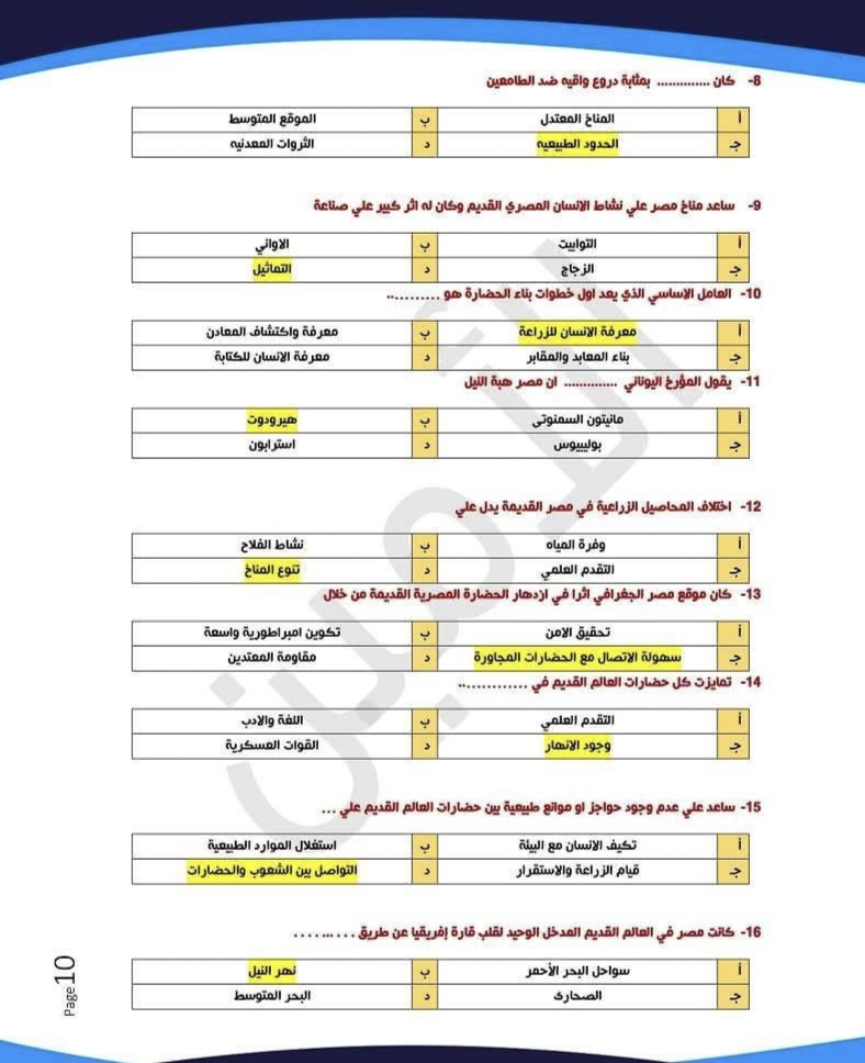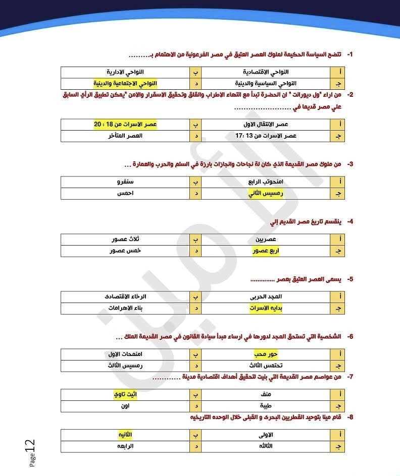 مذكرة تاريخ الصف الأول الثانوي 2025 pdf
