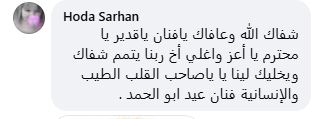 وجّه الفنان عيد أبو الحمد، رسالة شكر وتقدير للفريق الطبي المعالج له، عقب تعافيه من الأزمة الصحية التي مرّ بها مؤخرًا.