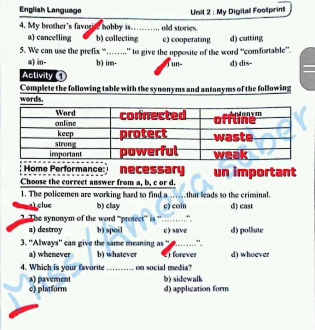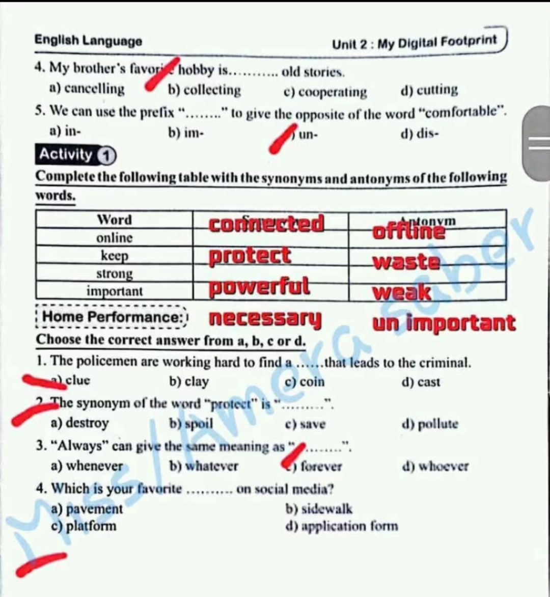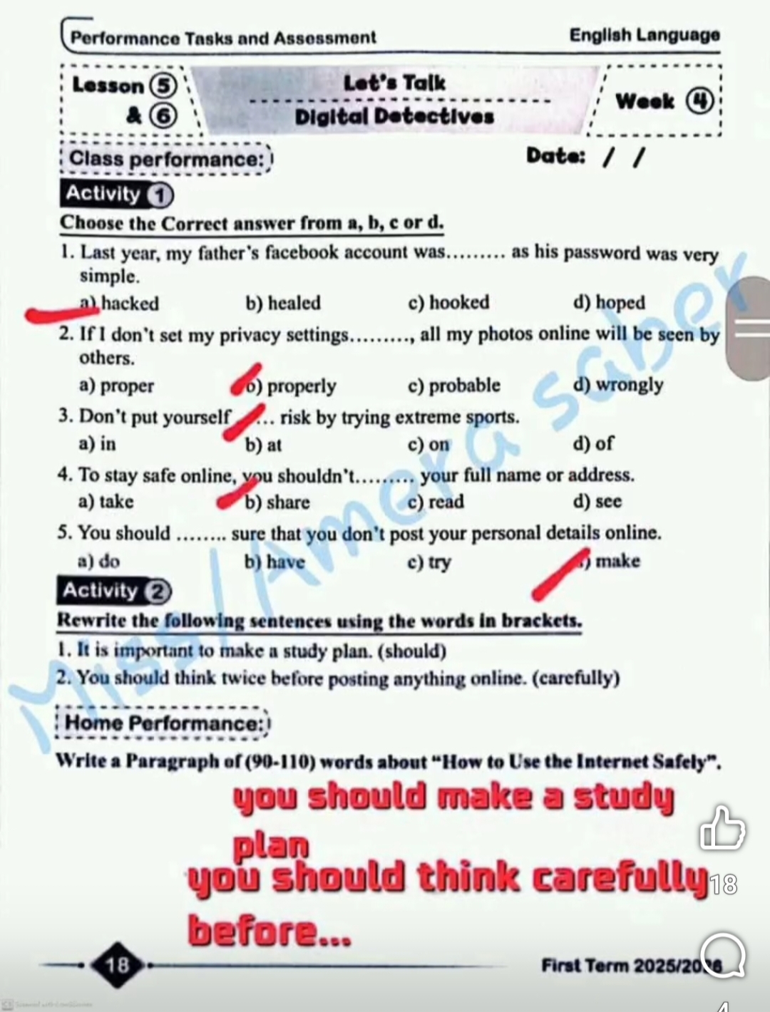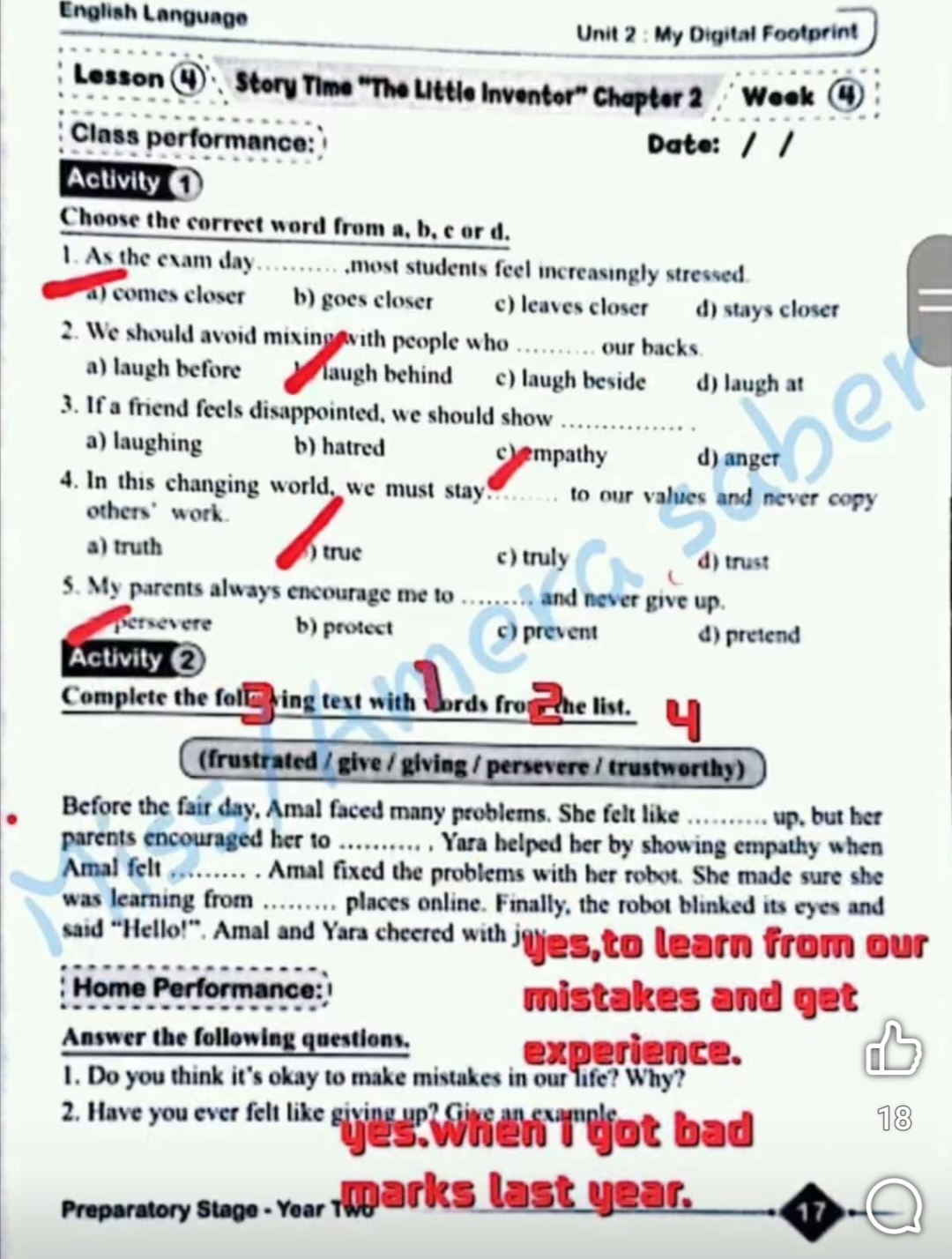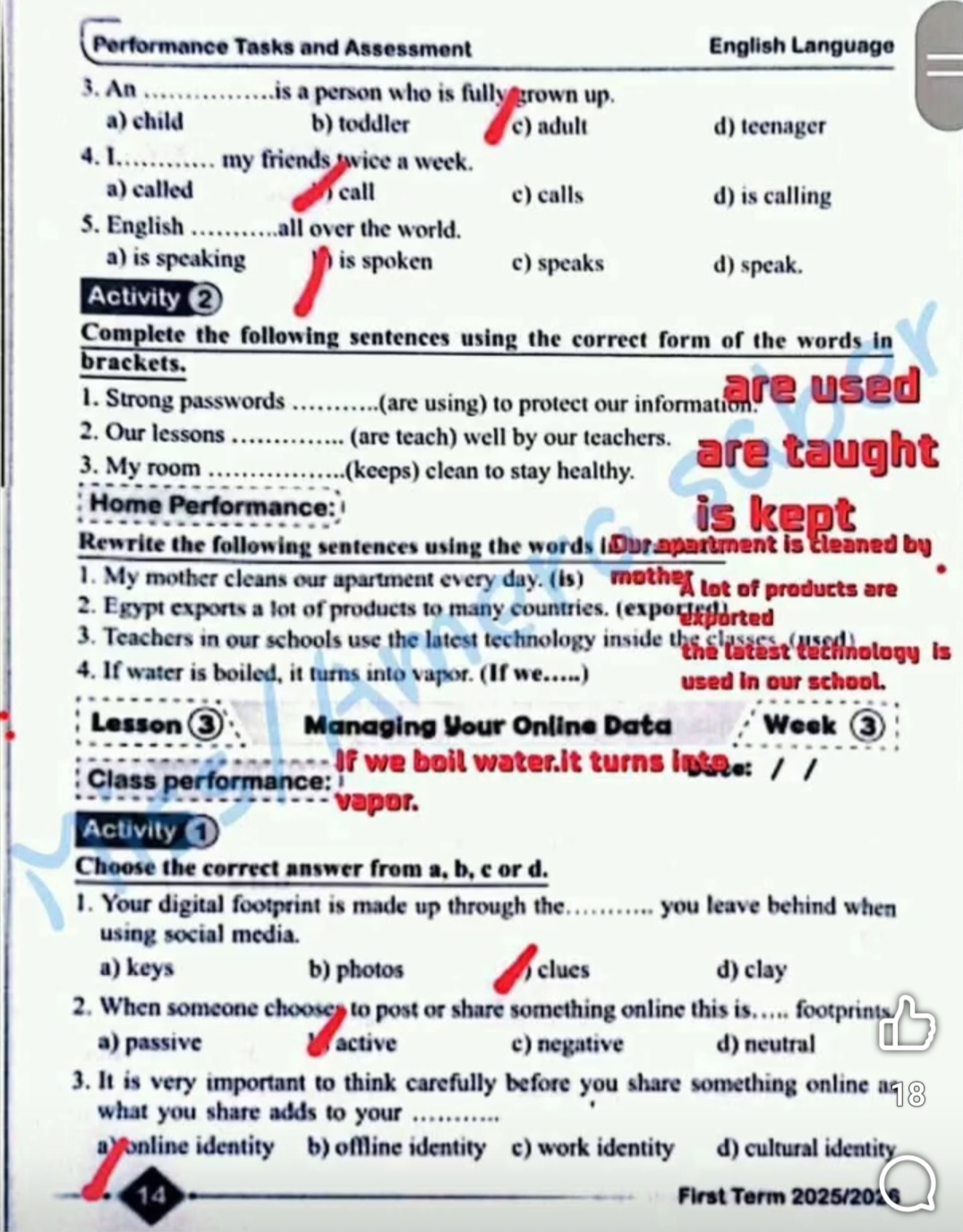 التقييم الأسبوعي للصف الثاني الإعدادي إنجليزي.. إجابات الأسئلة الكاملة