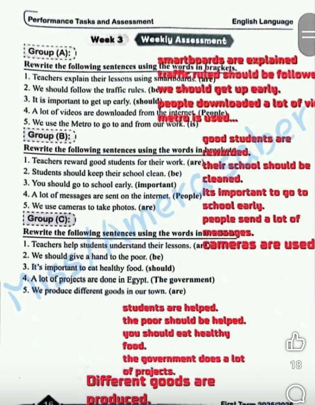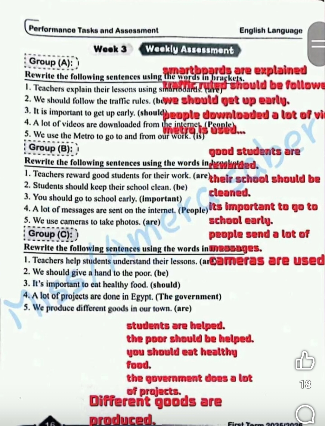 ويستطيع طلاب المرحلة الإعدادية الاطلاع على حل التقييمات الأسبوعية الصف الثاني الإعدادي انجليزي كالتالي: