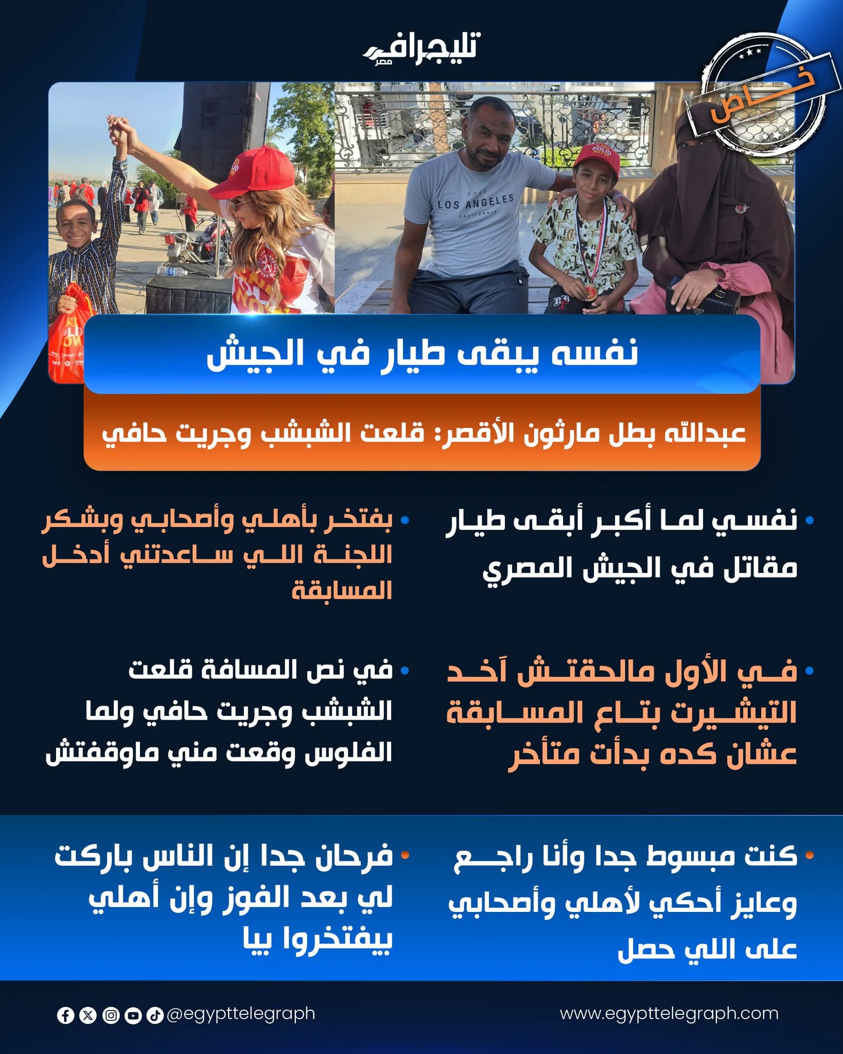عبد الله بطل ماراثون الأقصر: "مكنتش جاهز.. ونفسي أبقى طيار مقاتل في الجيش"