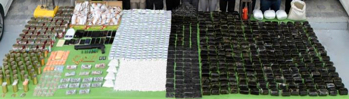 كما تم ضبط باقي عناصر تلك البؤر وبحوزتهم نحو طن من المواد المخدرة المتنوعة "حشيش، هيدرو، أيس، هيروين، 35 ألف قرص مخدر، 12 قطعة سلاح ناري متنوعة.