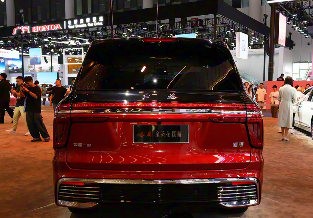 الخطوط الجانبية تحمل مزيجًا متوازنًا بين القوة والفخامة، مع أقواس عجلات ضخمة، فيما يبرز التصميم الخلفي بانسيابية الضوء المستعرض وشعار Hongqi الكلاسيكي الممتد عبر الغطاء الخلفي.