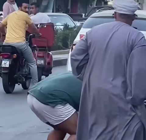 ويظهر بالفيديو شاب يركب سيارة ويغافل أحد الأشخاص، بربط بنطاله بحبل مثبت بالسيارة، وعقب تحركها تُنتزع أجزاء من ملابسه، مما يجعله في حالة إحراج أمام المارة.