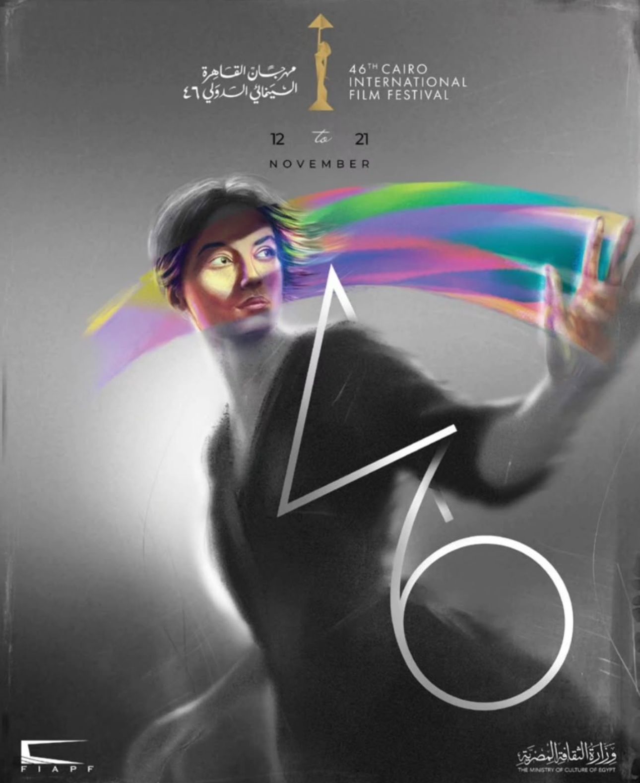 أما الرقم 46، فبخطه الهندسي الواضح، يجسّد مرحلة متجددة في مسيرة المهرجان، الذي يواصل احتفاءه بالسينما كـ"قوة مضيئة تمنح الإنسان فرصة لاكتشاف ذاته والعالم من جديد".