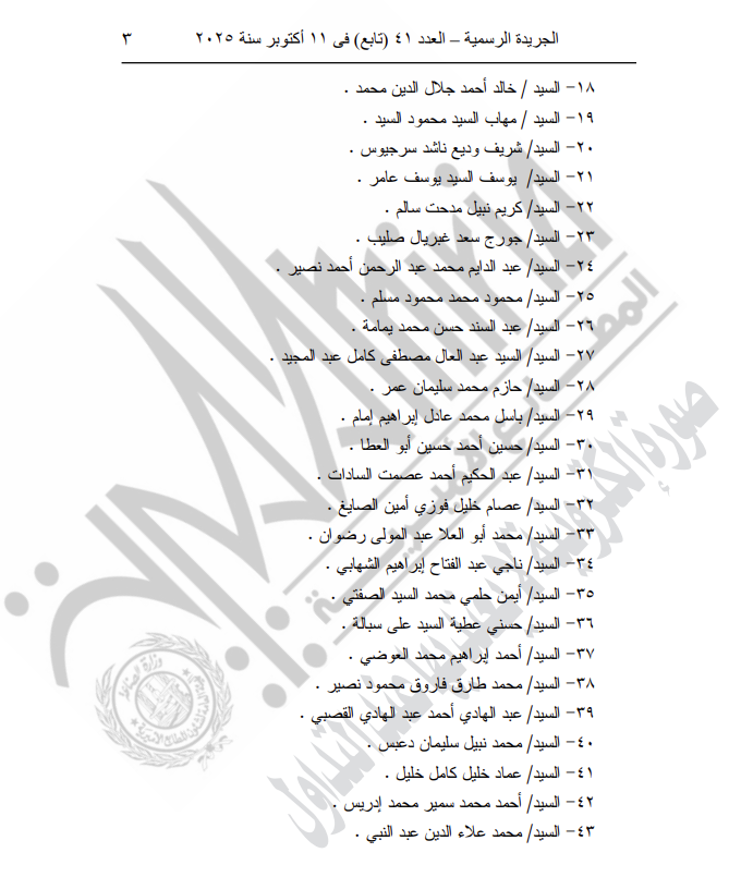 نشرت الجريدة الرسمية، قرار رئيس الجمهورية رقم 575 لسنة 2025، بشأن تعيين 100 عضو جديد بمجلس الشيوخ، وذلك في العدد رقم 41 تابع بتاريخ 11 أكتوبر 2025.