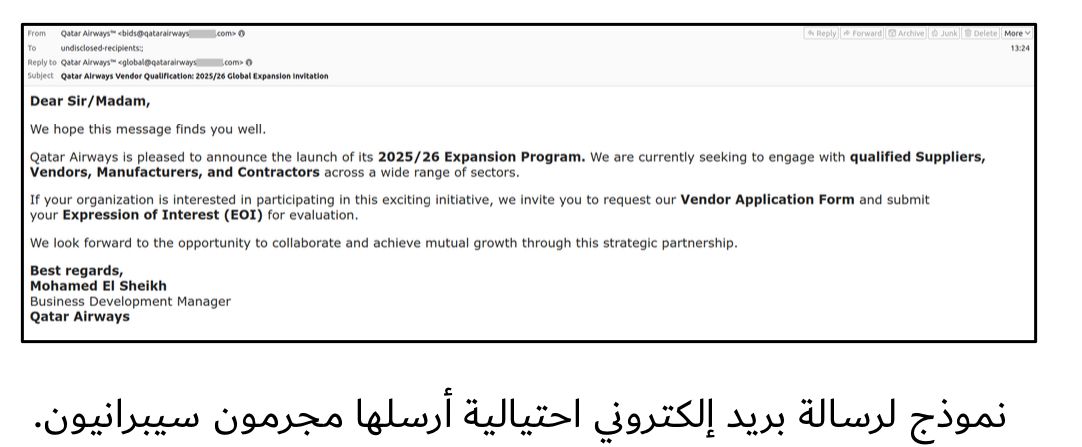 كشف باحثو كاسبرسكي عن تصاعد في رسائل البريد الإلكتروني الاحتيالية التي ينتحل فيها المهاجمون أسماء شركات مثل طيران الإمارات، الخطوط الجوية القطرية، الاتحاد للطيران، مطار سخيبول أمستردام، وشركة لوفتهانزا للطيران، وغيرها. يقوم المحتالون بخداع الشركات من خلال التواصل معها بخصوص صفقات توريد وشراكات وهمية، بغرض سرقة الأموال من المؤسسات المستهدفة.