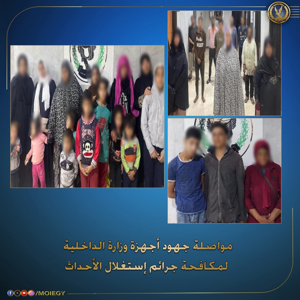 في وقت سابق، تمكنت الإدارة العامة لمباحث رعاية الأحداث بقطاع الشرطة المتخصصة من ضبط 3 رجال و6 سيدات، من بينهم 6 لهم معلومات جنائية، لقيامهم باستغلال الأطفال في التسول وبيع السلع بطريقة إلحاحية، بدوائر أقسام شرطة (مصر الجديدة – النزهة – قصر النيل) بمحافظة القاهرة.